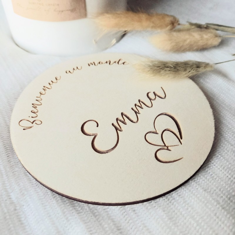 Une carte étape cœur en bois pour immortaliser la naissance de votre bébé et pourquoi en faire une jolie photo pour l'envoyer à vos proches.