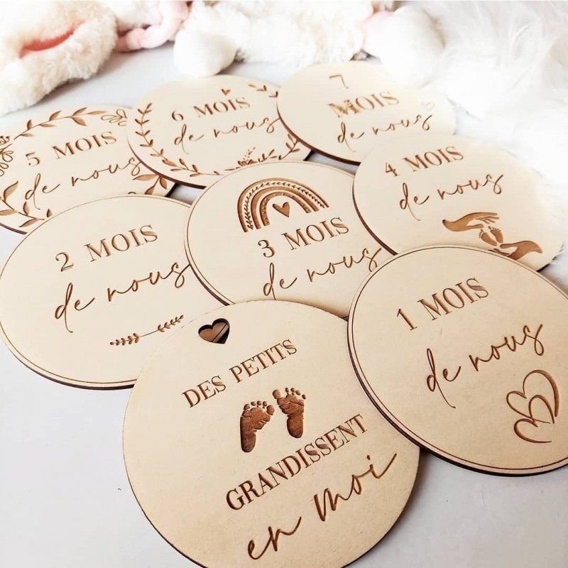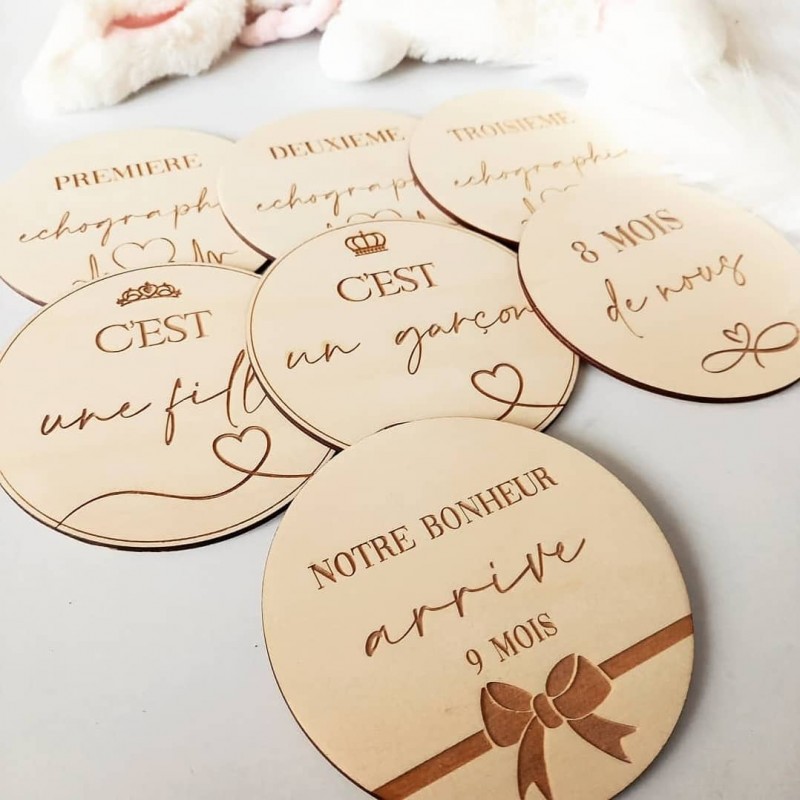 Voici 15 cartes étapes pour annoncer votre grossesse, vous photographier chaque mois jusqu'à l'accouchement, l'annonce du sexe de bébé et les 3 échographies.