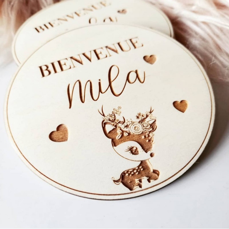Une magnifique biche avec sa couronne de fleurs pour une carte naissance douce et originale.