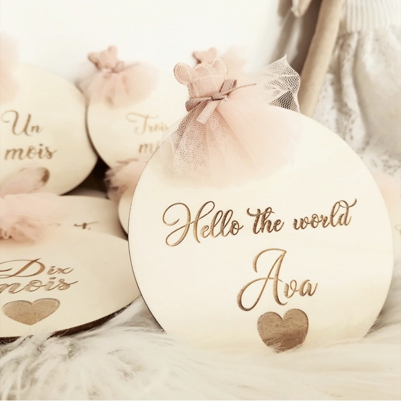 Un magnifique lot de 13 cartes étapes (12 mois + carte naissance) pour la naissance de votre petite puce.