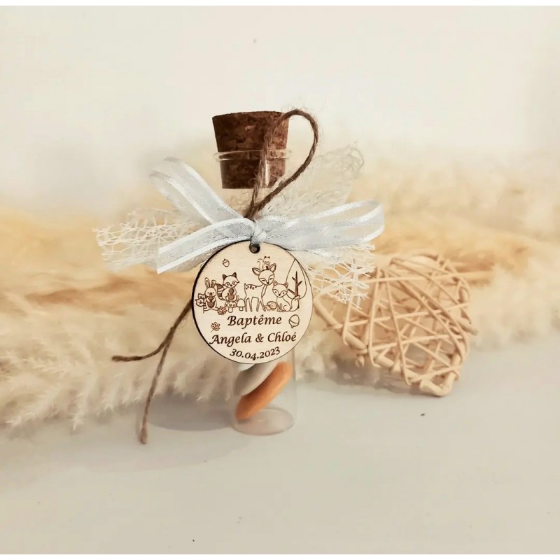 Une éprouvette originale dans le thème des animaux de la forêt. Elle sera parfaite pour un baptême ou un anniversaire.