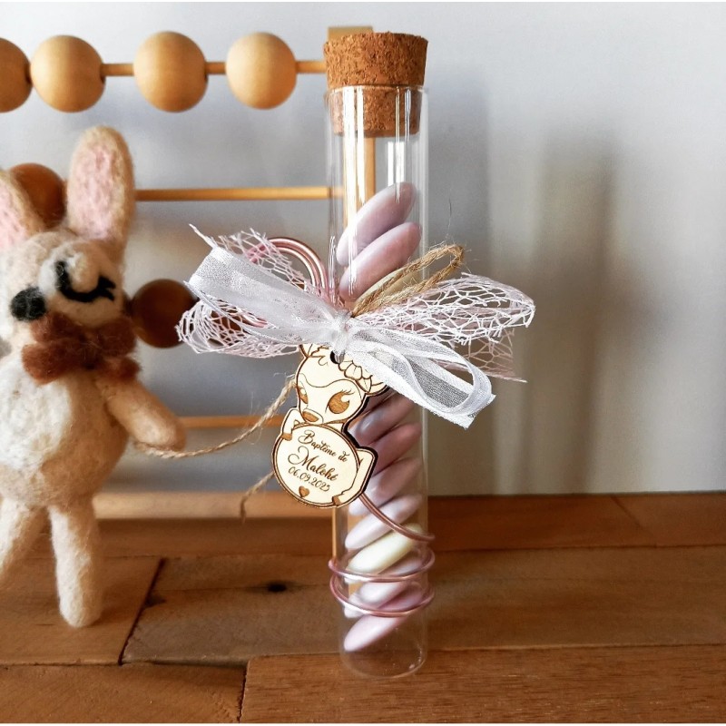 Une grande éprouvette biche conçue pour le parrain, la marraine et les grands parents de votre petite fille.