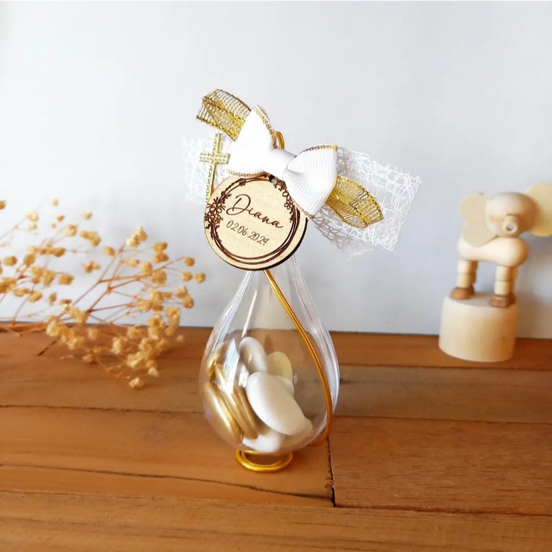 Cette boîte à dragées goutte or et blanc est parfaite pour la communion de votre enfant.