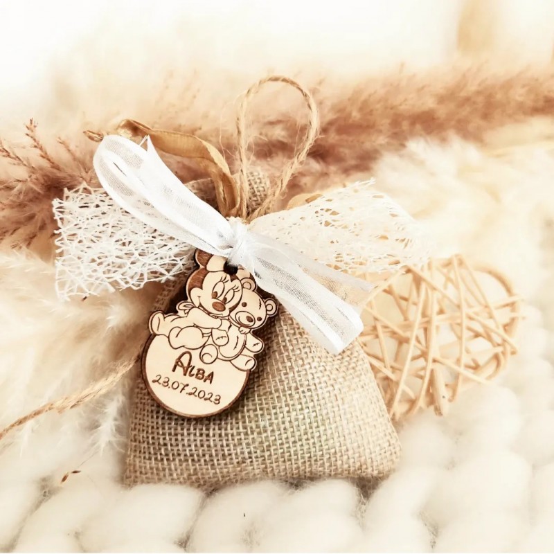 Ce contenant plaira à vos invités par sa fantaisie et par ses dragées de qualité. Décorée avec une figurine Minnie originale, la boite à dragées sera un cadeau idéal pour un baptême ou une naissance.