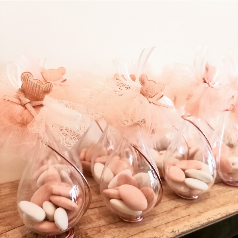 Sublime goutte avec son ourson tutu pour le baptême et la naissance d'une petite fille.