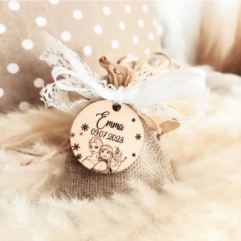 La reine des neiges qui a tant été aimée par les enfants est désormais en pochon toile de jute.