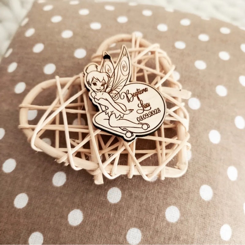 La fée clochette en étiquette bois pour personnaliser votre fête d'anniversaire, de baptême ou autre.