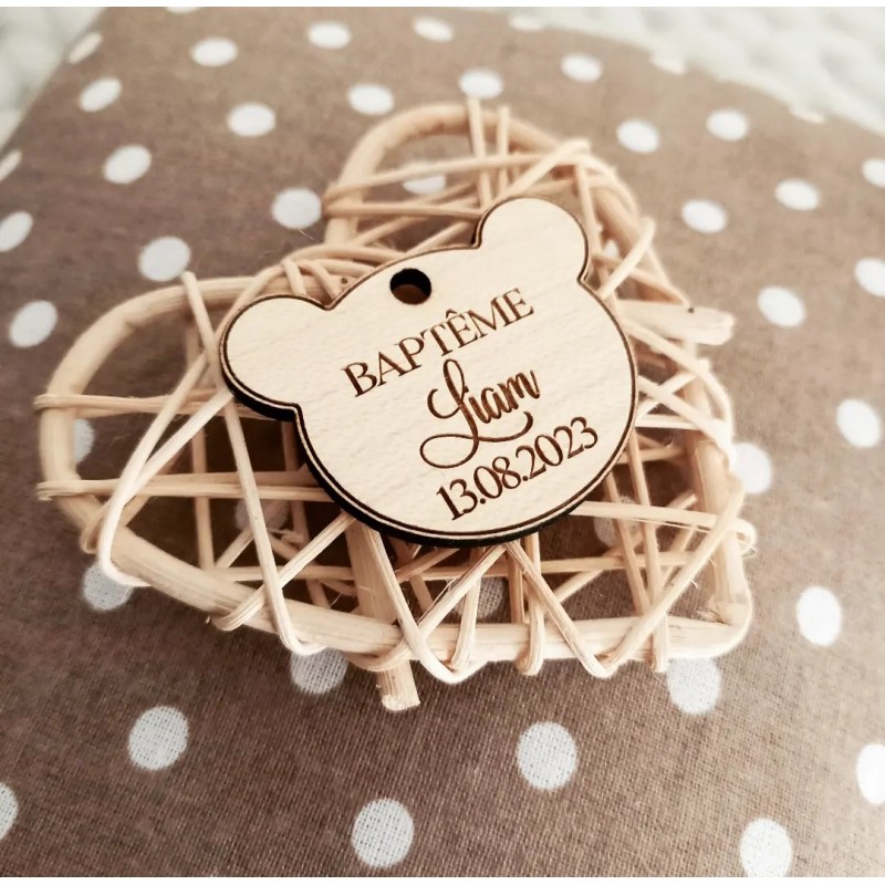 Très originale, cette étiquette en forme de tête d'ourson pour décorer vos boîtes à dragées et ballotins toute occasion comme un baptême, une naissance ou un anniversaire.