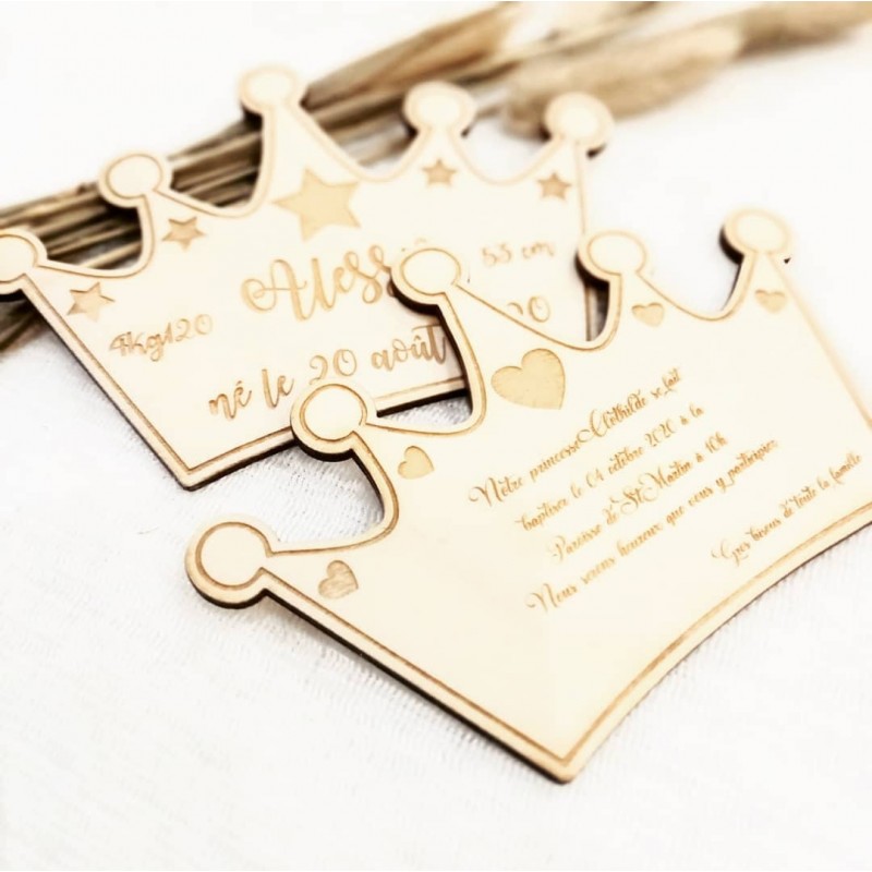 Des faire-part originaux prince et princesse en forme de couronne pour annoncer la naissance ou le baptême de votre chérubin.