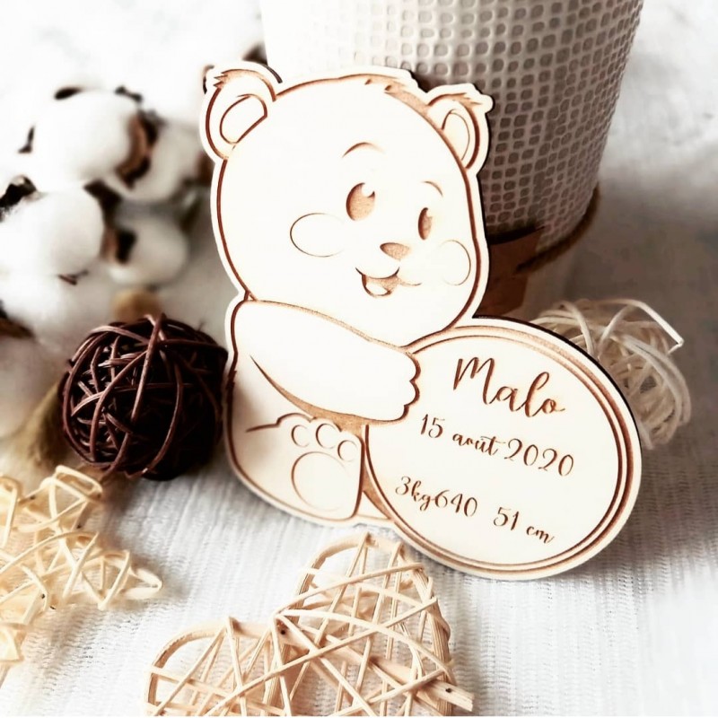 Un faire-part original et magnétique sur le thème ourson à offrir pour la naissance ou le baptême de votre enfant.
