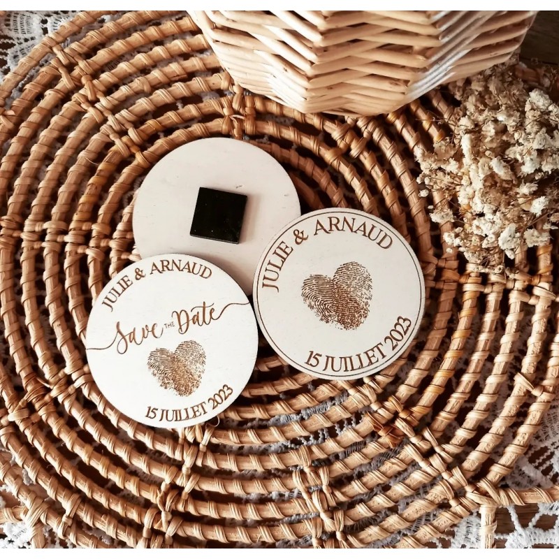 Vous aurez le choix entre 2 magnets soit pour annoncer votre mariage à vos convives avec le save the date soit avec vos prénoms et la date de votre mariage plus simplement pour offrir le jour de votre mariage un joli souvenir.