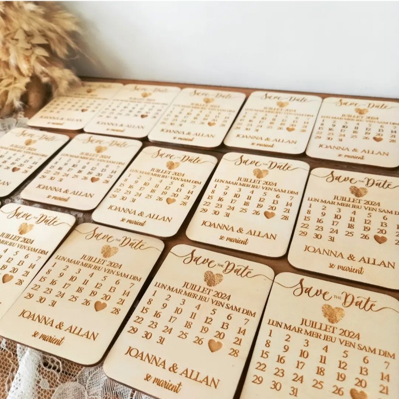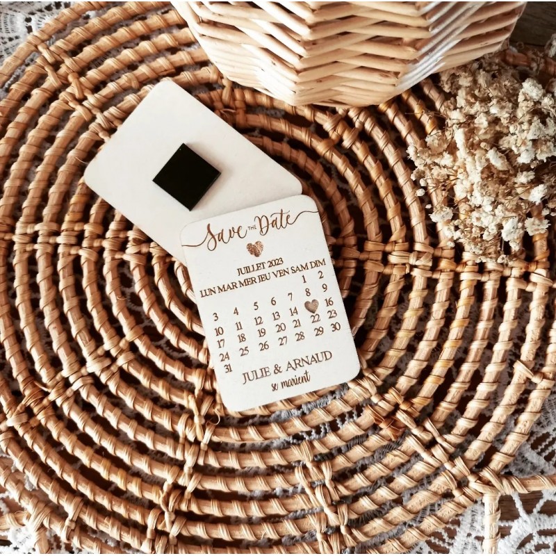 Un magnet en bois original pour annoncer la date de votre mariage à vos proches et amis.