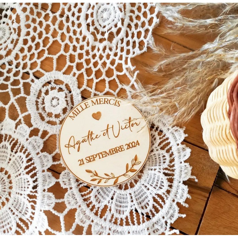 Un cadeau de remerciement original qui change de la traditionnelle boite de dragées avec ce magnet en bois