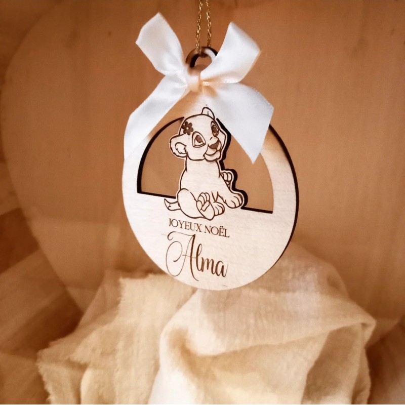 Apportez une touche de douceur à votre sapin avec cette magnifique boule de Noël en bois gravée, représentant Nala du Roi Lion. Personnalisée avec le prénom de votre choix, elle sera un souvenir unique et attendrissant pour petits et grands