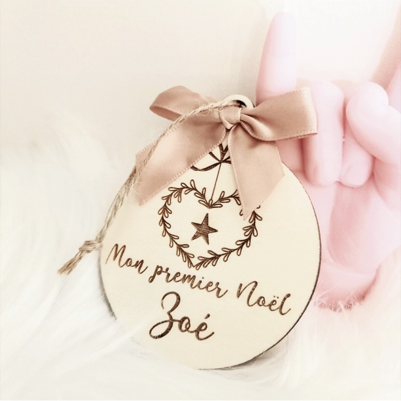 Une superbe boule de Noël personnalisée en bois avec soncoeur suspendu que vous pourrez offrir ou accrocher à votre sapin.
