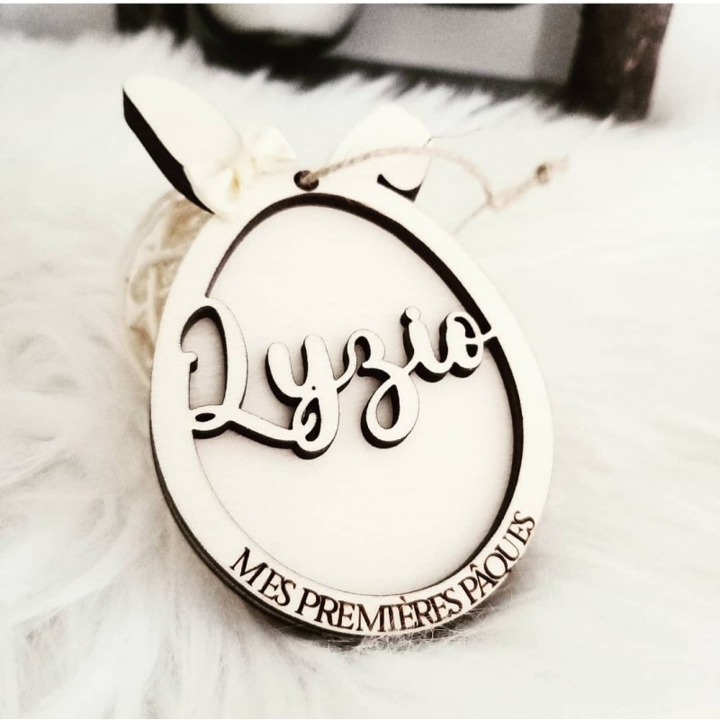 Vous pourrez choisir le petit texte de votre choix comme "mes premières pâques" etc